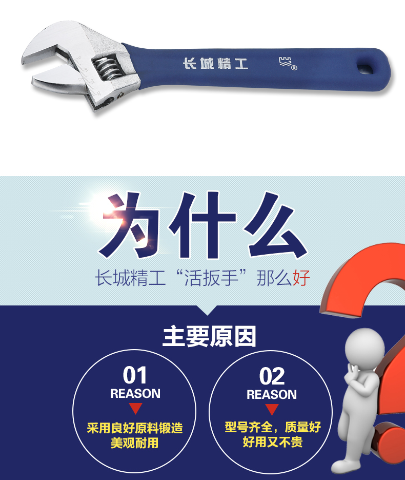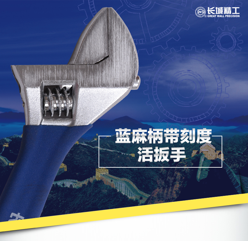 商品名称:长城精工 活动扳手大开口蓝麻柄带刻度活扳手多规格活络扳手活头扳 304636