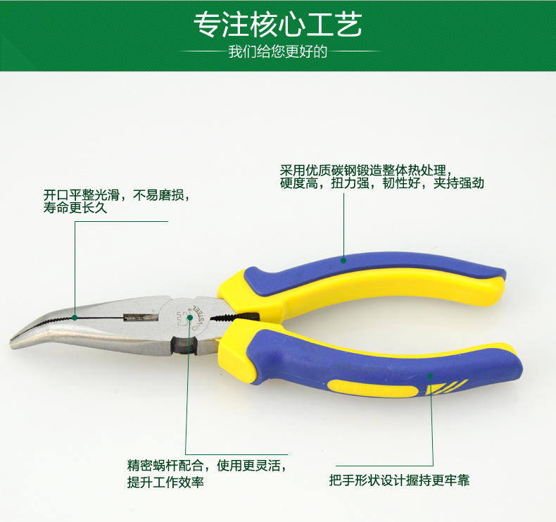 商品名称:长城精工 弯嘴钳双色套塑柄6寸弯嘴尖嘴钳歪嘴钳鸟嘴钳弯头钳 218046