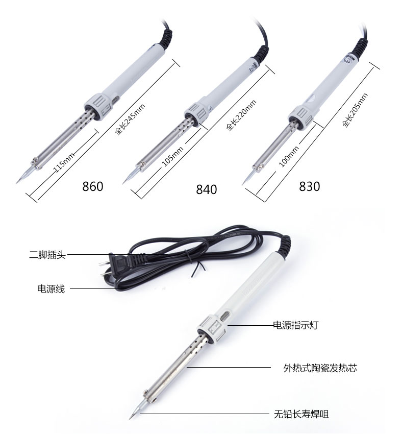 商品名称:黄花牌 烙铁外热式60W 无铅长寿电烙铁 陶瓷发热芯烙铁 800