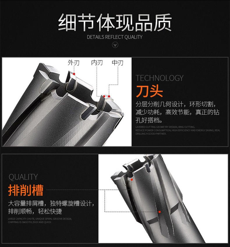 博大 空心钻头35MM 磁力钻钻头 钢板钻头 取芯钻硬质合金钻头 磁座
