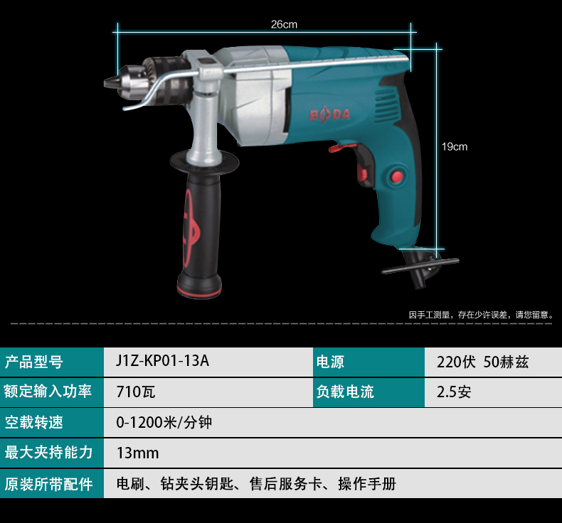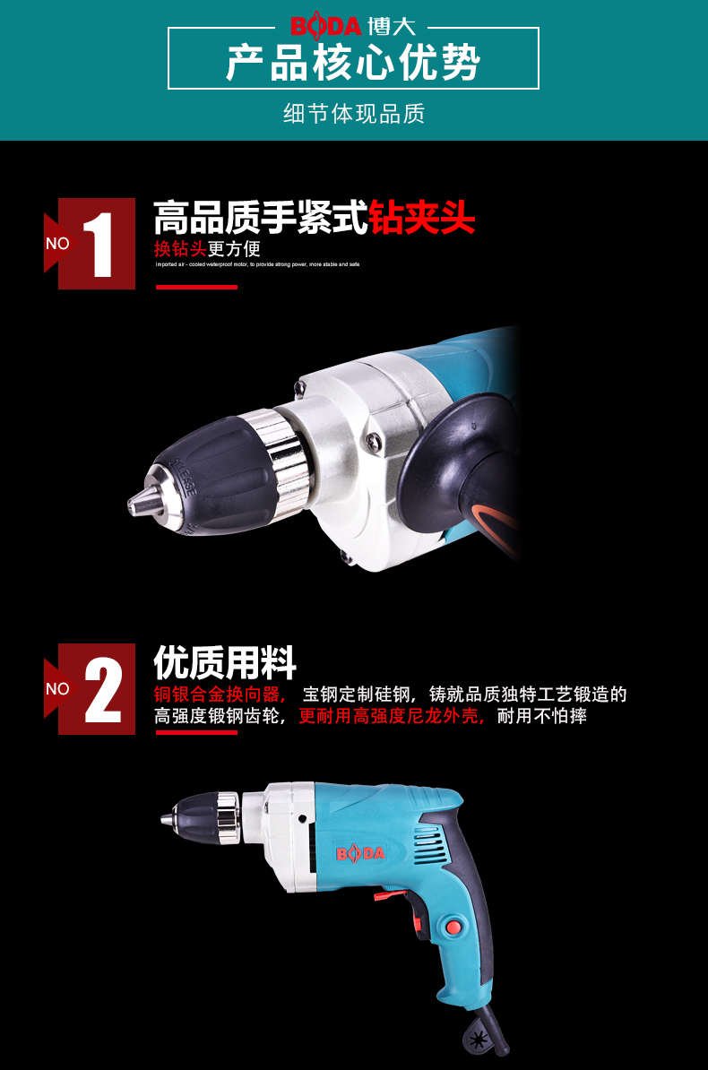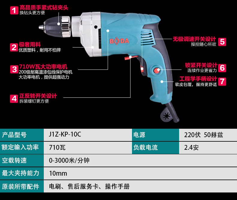 商品名称:博大 大功率电钻家用装修多功能木工手枪钻电动工具螺丝刀 D1-13