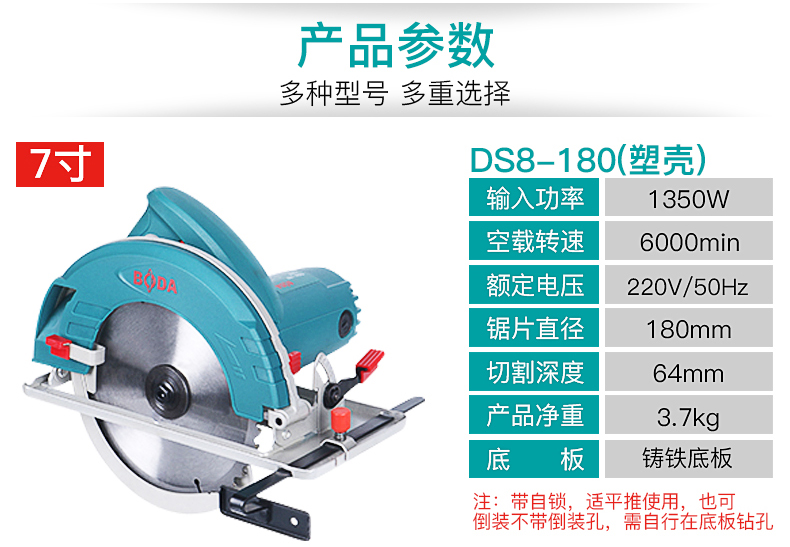 商品名称:博大 电圆锯7寸9寸10寸木工倒装锯 家用手提锯 切割机 台锯 圆盘据 DS8-180