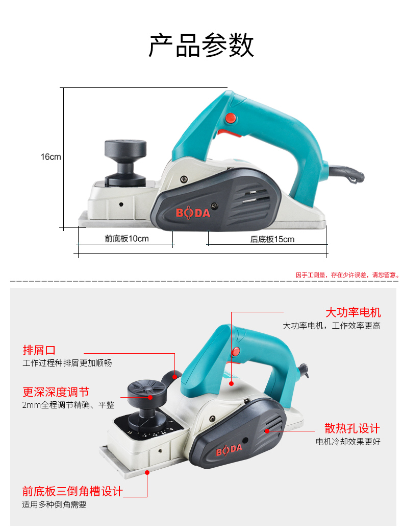 商品名称:博大 电刨家用多功能手提木工刨电孢子 平刨机 压刨机电推刨菜板机 PL8-82E