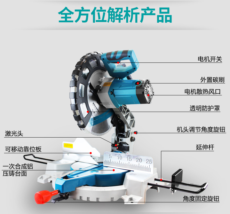 商品名称:博大 14寸355大型切割机锯铝机界铝机斜断锯大功率带激光斜切割锯 M1-355