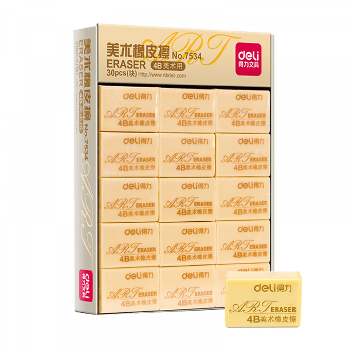 商品名称:得力 B橡皮擦 学生考试 美术绘画 30块/盒 32*22*13mm/块