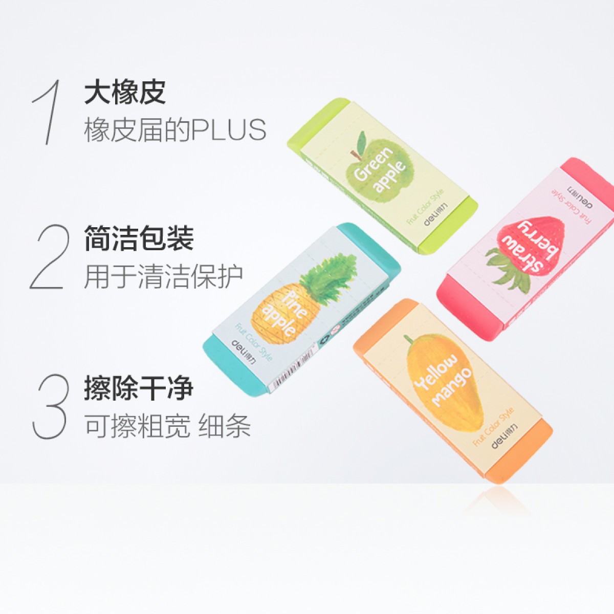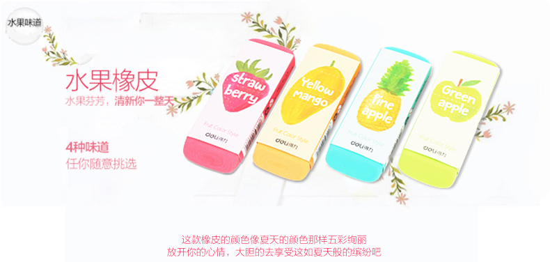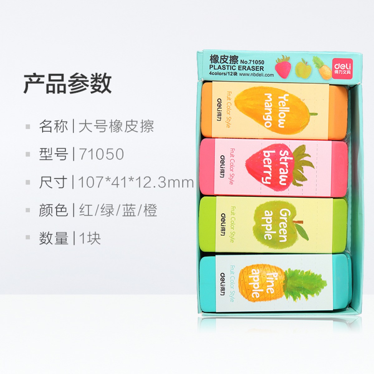 商品名称:得力 大橡皮擦 4b橡皮 彩色水果 学生美术绘画107*41*12.3mm