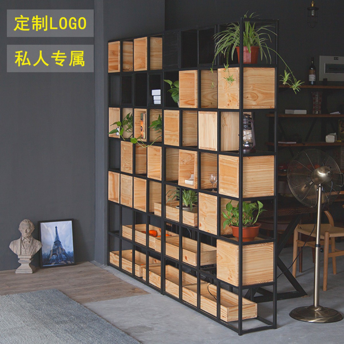 商品名称:国产 铁艺实木书架置物架落地多层创意格子架客厅隔断屏风美式复古