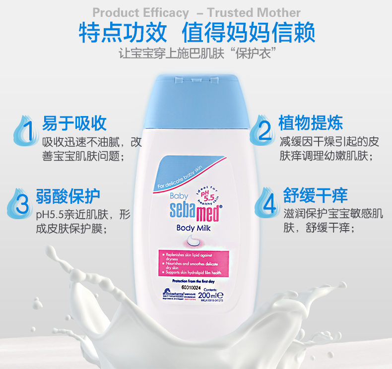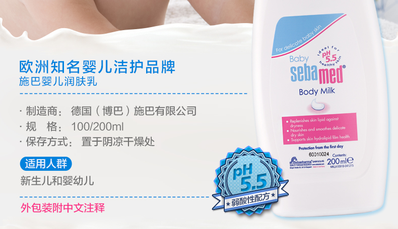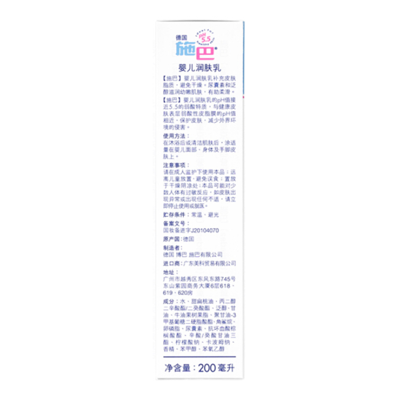 商品名称:Sebamed/施巴 婴儿润肤乳200ml保湿身体乳液