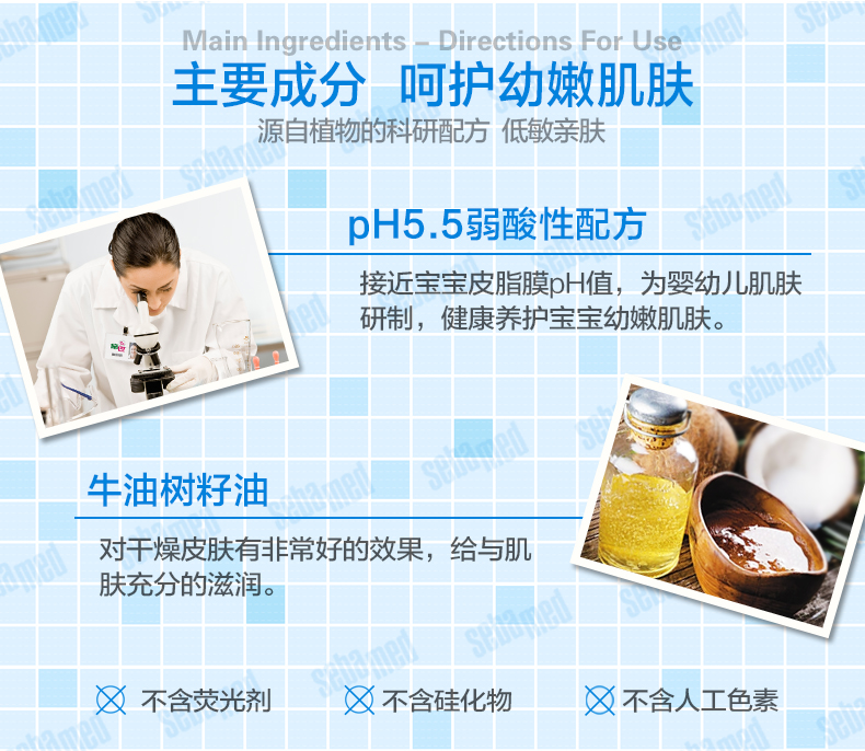 功能:滋润配方,补充肌肤油脂,舒缓干痒