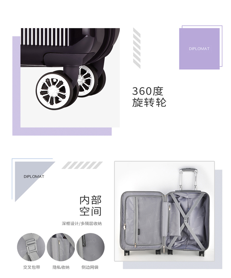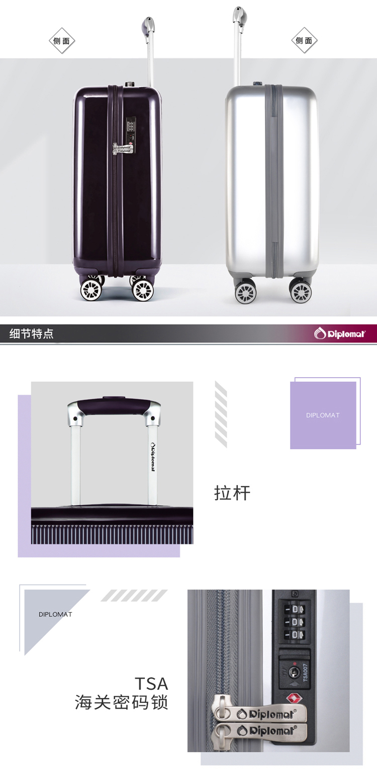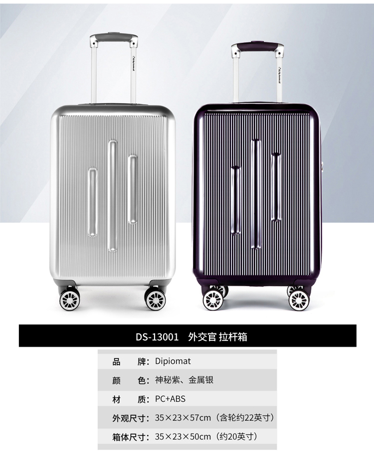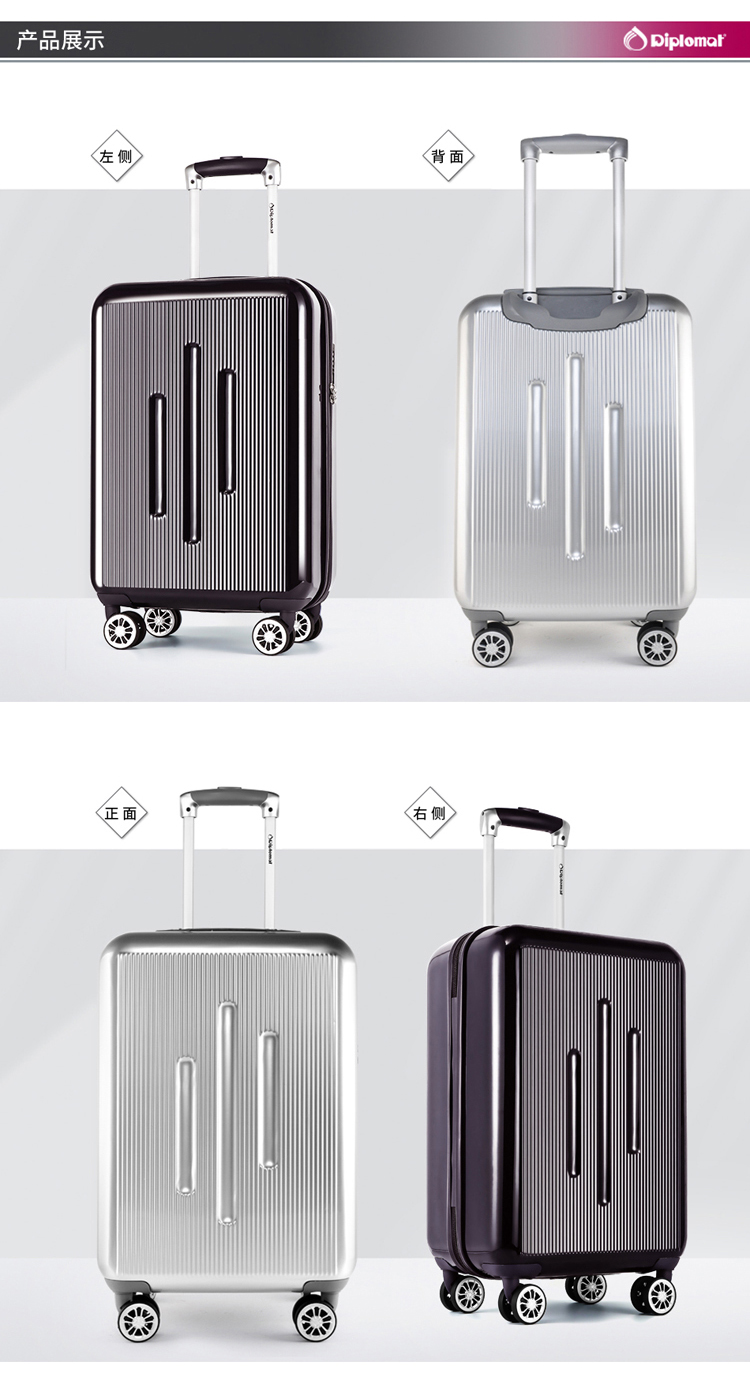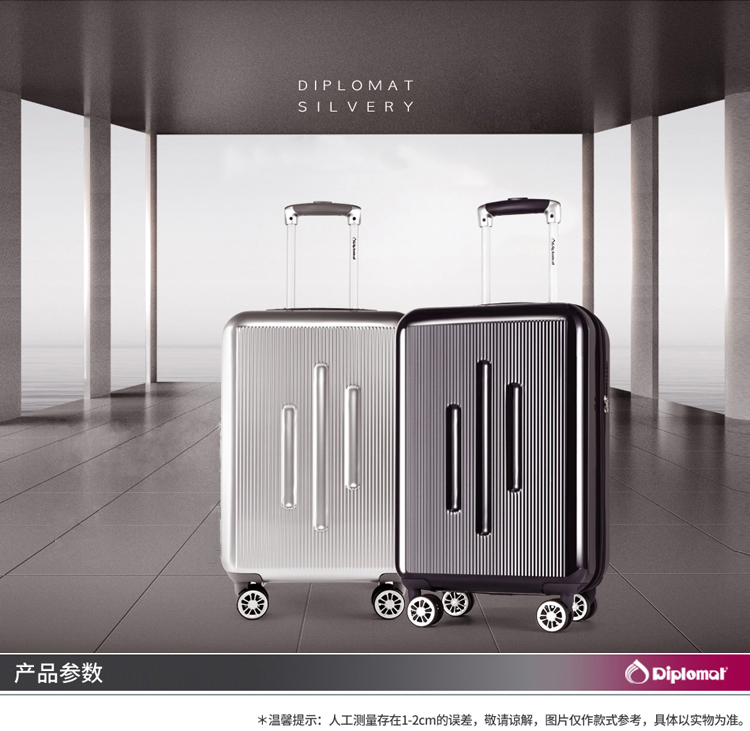 商品名称:Diplomat/外交官 时尚休闲商务拉杆箱银色 20英寸 DS-13001