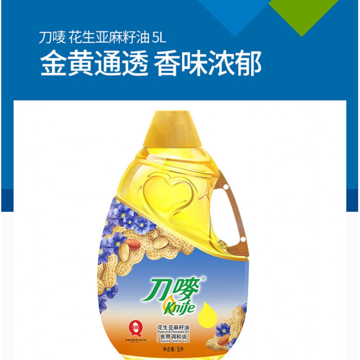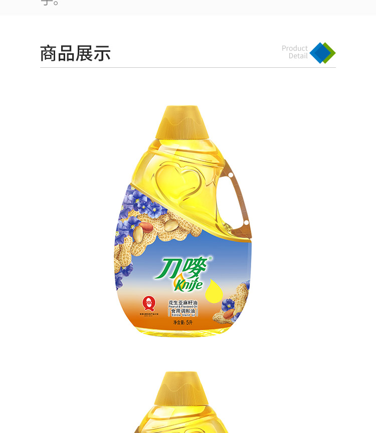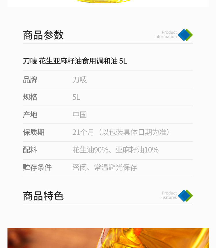 商品名称:刀唛/Knife 花生亚麻籽油 食用调和油5L 源于香港 金黄通透香味浓郁