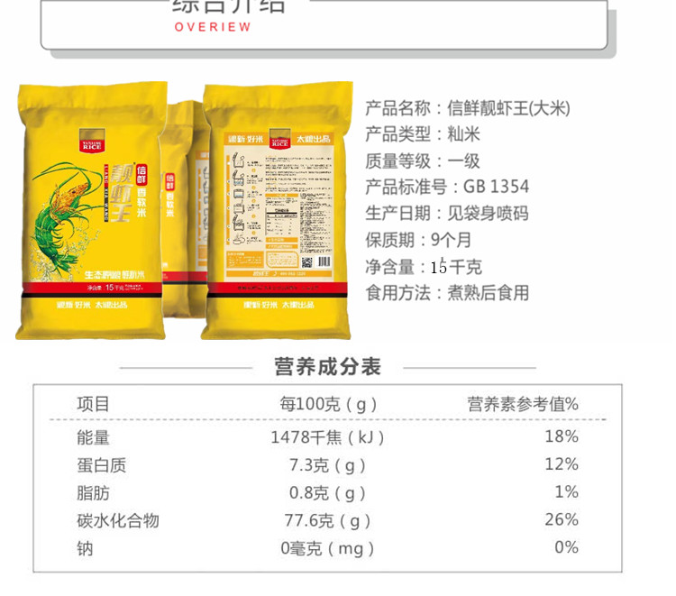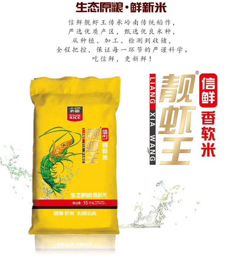 商品名称:太粮 靓虾王信鲜油粘米15KG/袋软香米南方籼米大米 新鲜米