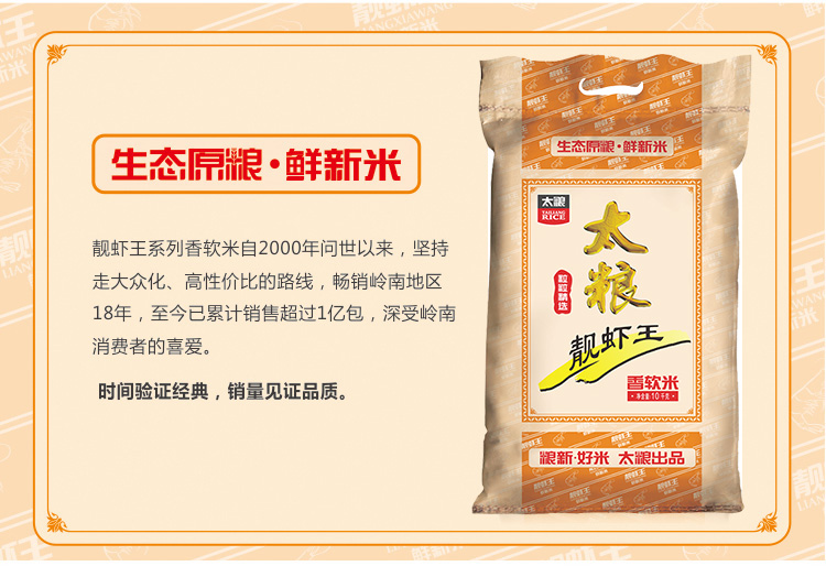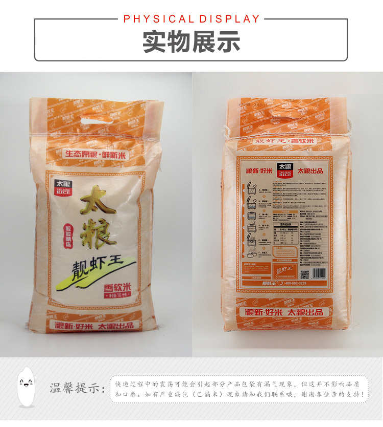商品名称:太粮 靓虾王 香软米10kg/袋 油粘米大米非东北珍珠米