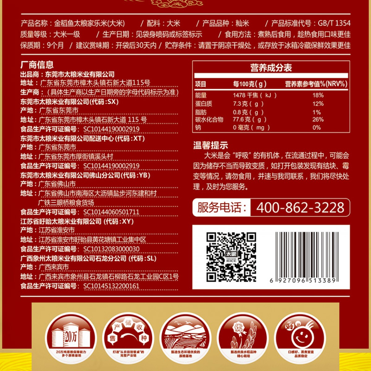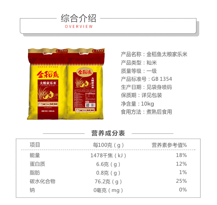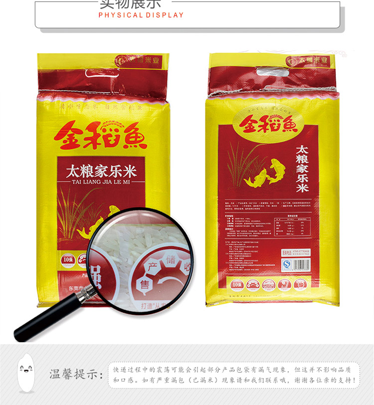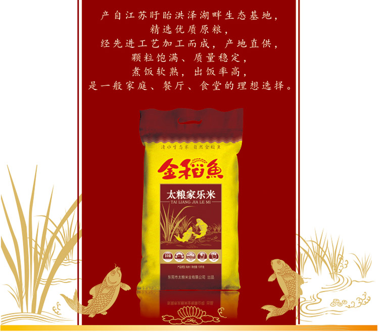 商品名称:太粮 金稻鱼家乐米10KG/袋江苏原粮大米香米苏软米