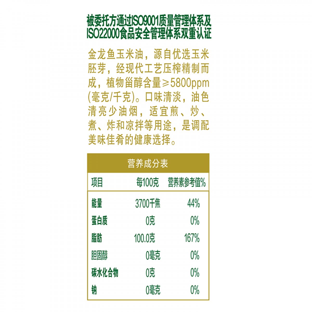 商品名称:金龙鱼 玉米油(4L+700ML)