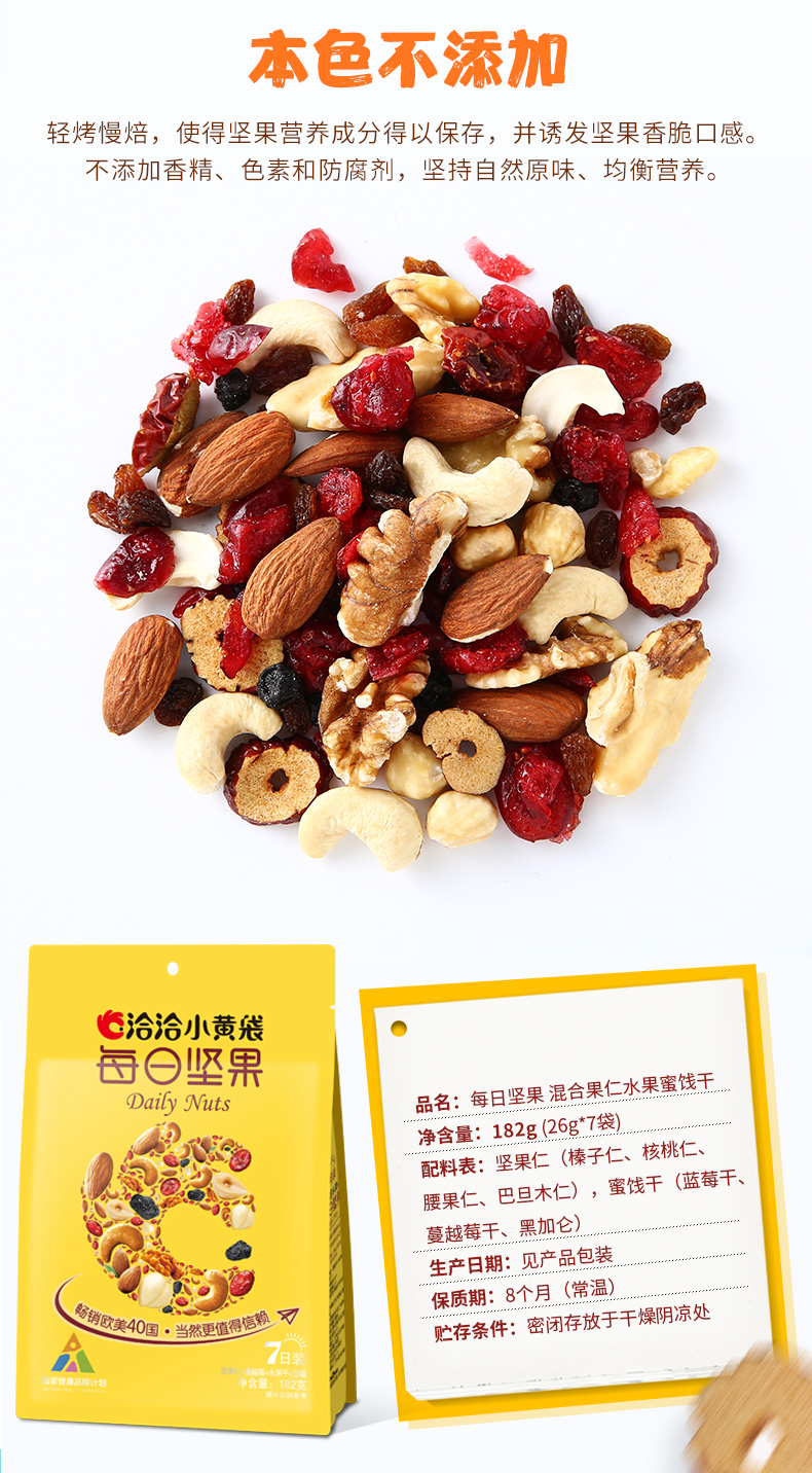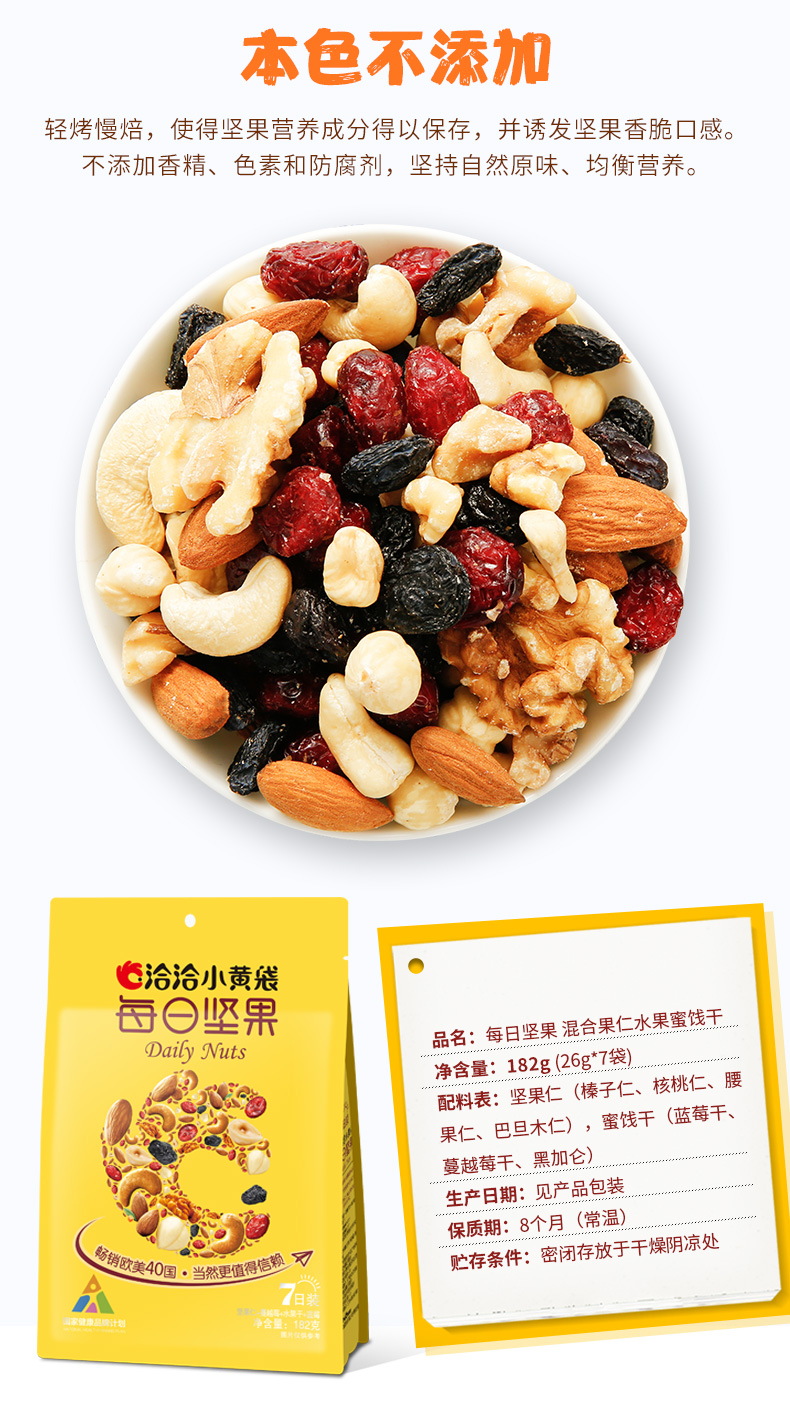 商品名称:恰恰 每日坚果洽洽混合坚果综合果仁果干每天坚果组合零食26g*7包