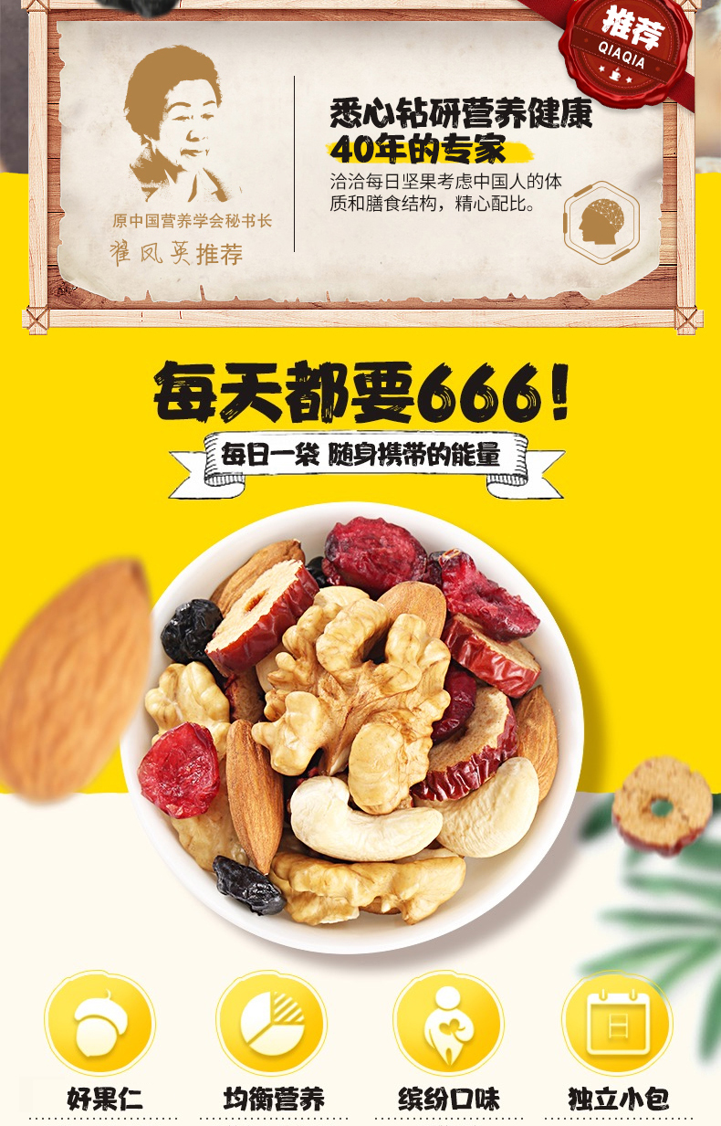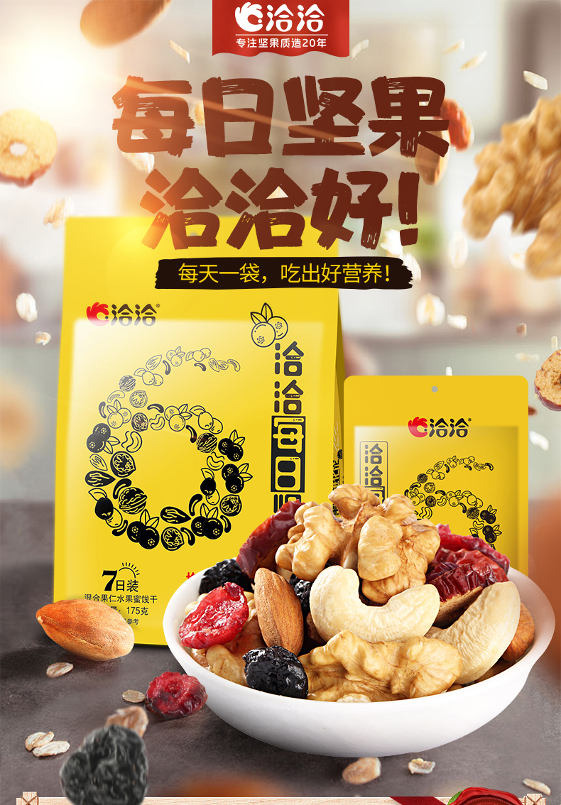 商品名称:洽洽 每日坚果恰恰混合坚果7包装果仁果干成人款综合零食175g*2袋