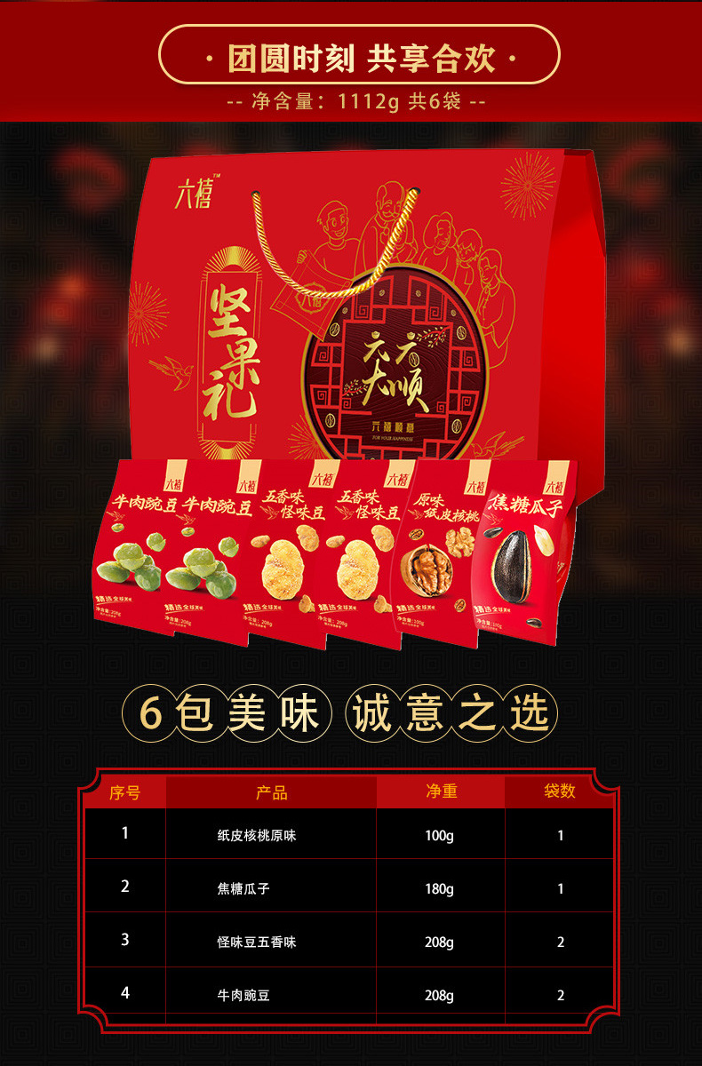 商品名称:洽洽 坚果六六大顺坚果休闲炒货零食礼盒1112g