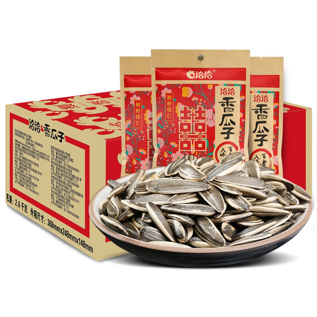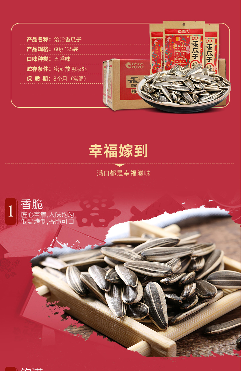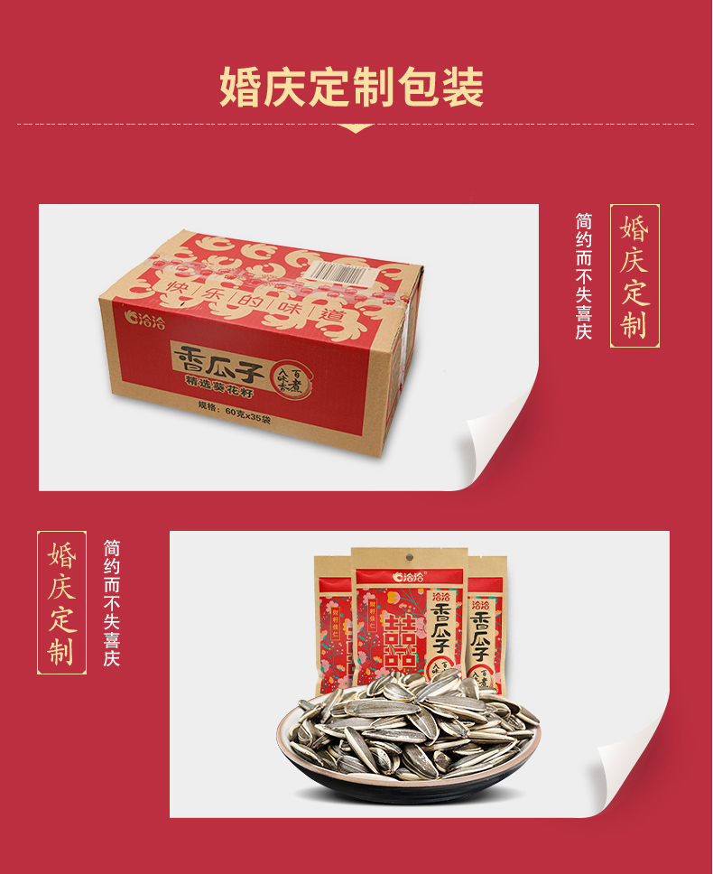 商品名称:洽洽 香瓜子婚庆装恰恰瓜子坚果炒货休闲零食60g*35袋/箱批发c