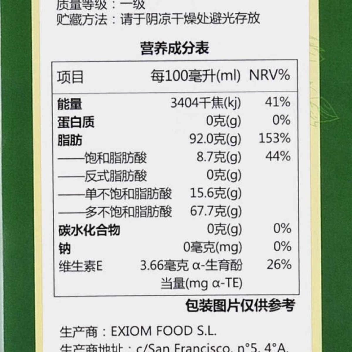 商品名称:蓓琳娜/BELLINA 葡萄籽油 3L 食用油 礼盒装 西班牙原瓶进口