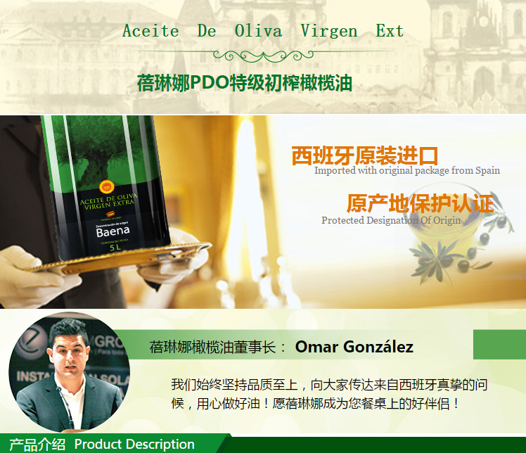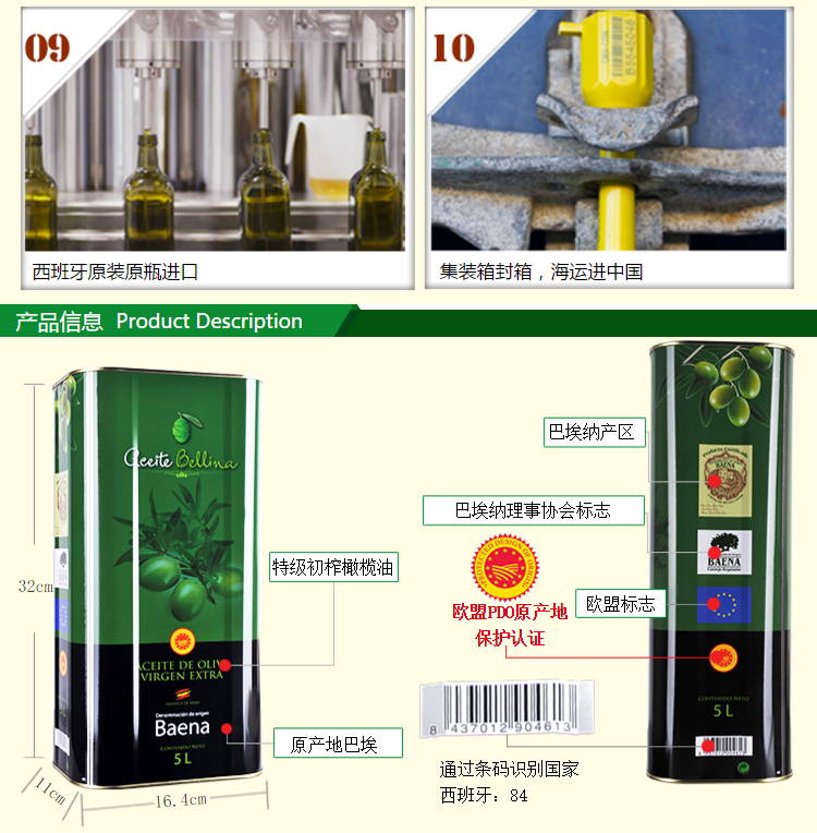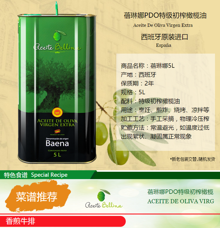 商品名称:蓓琳娜 BELLINA PDO 特级 初榨 橄榄油 5L 西班牙原装进口