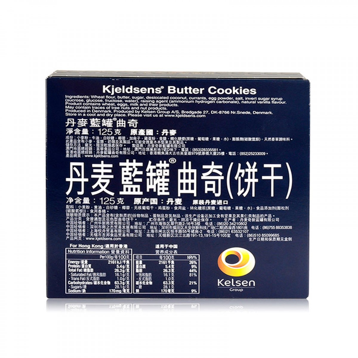 商品名称:Kjeldsens/丹麦蓝罐 加仑子曲奇饼干原味125g办公室进口休闲零食品