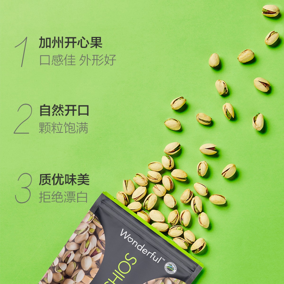 商品名称:Wonderful/万多福 进口盐焗开心果休闲零食袋装散装批发454g