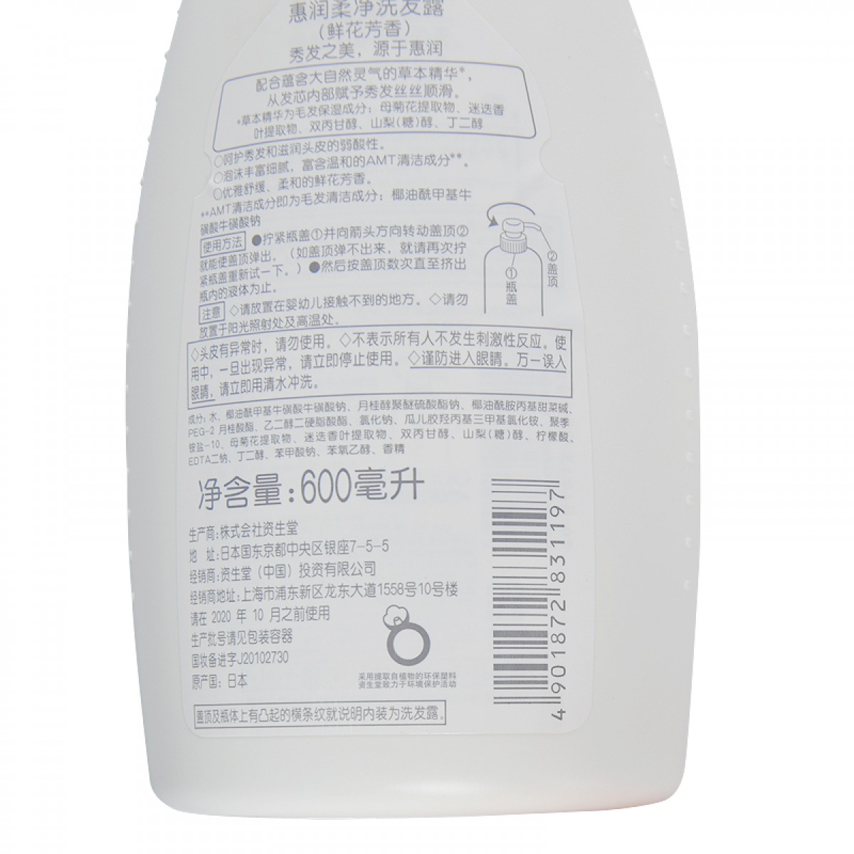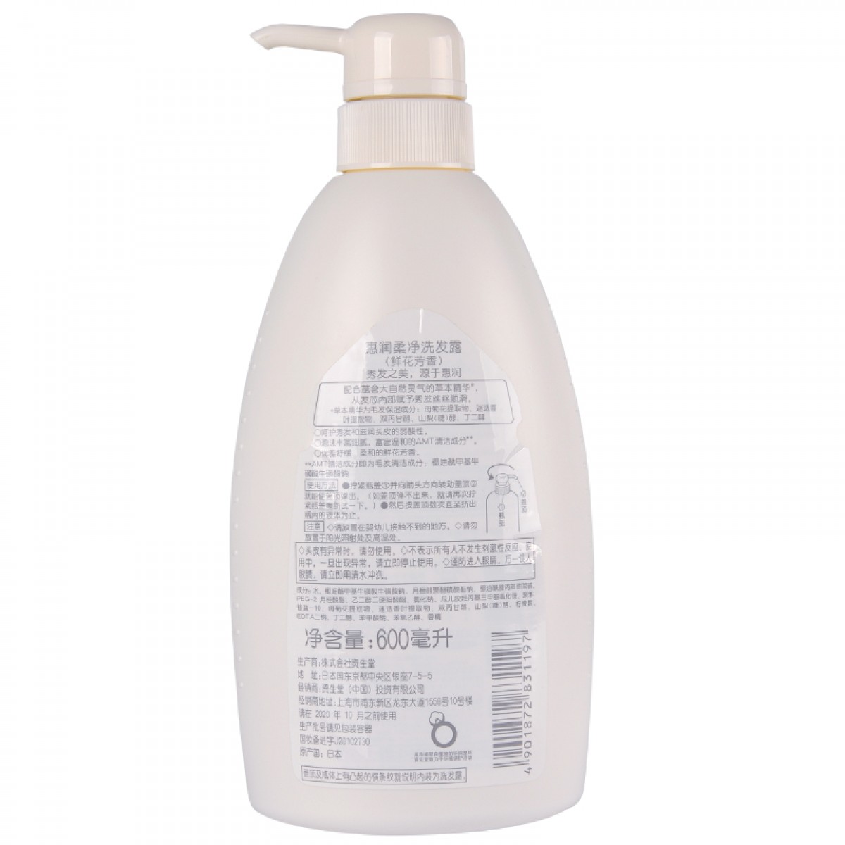 商品名称:资生堂 无硅油洗发水惠润柔净鲜花芳香男女士洗发露600ml