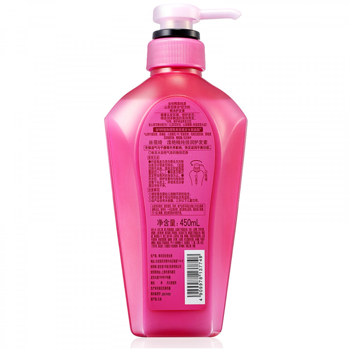 商品名称:资生堂 无硅油洗发水丝蓓绮滢艳精纯倍润洗发露450mL 润泽秀发