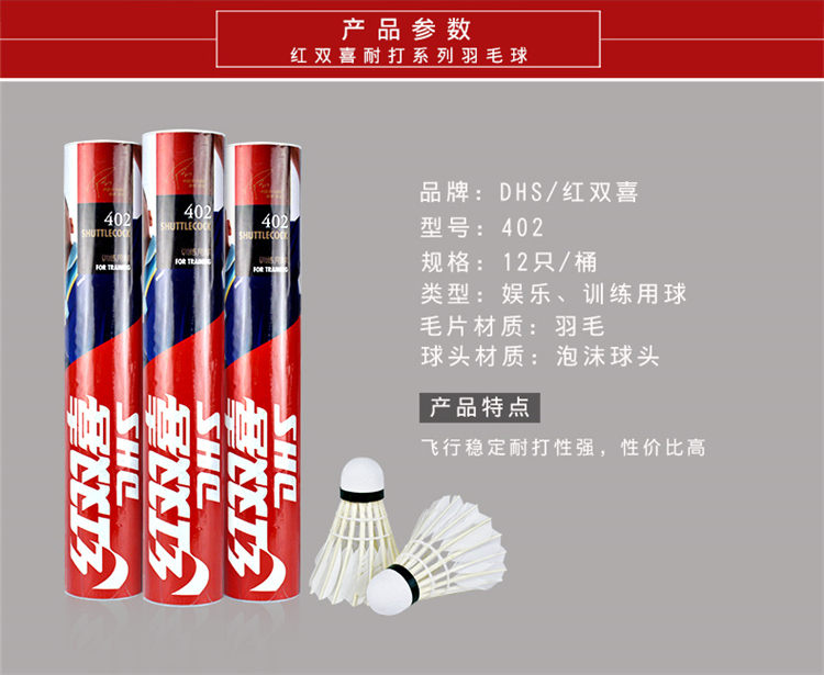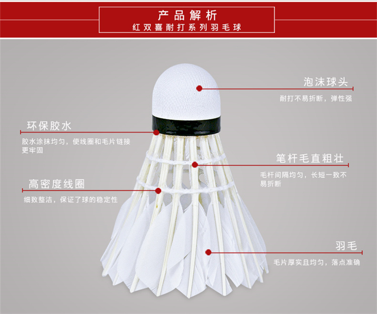 商品名称:红双喜 羽毛球 鹅毛 402羽毛球 12只装 稳定耐打