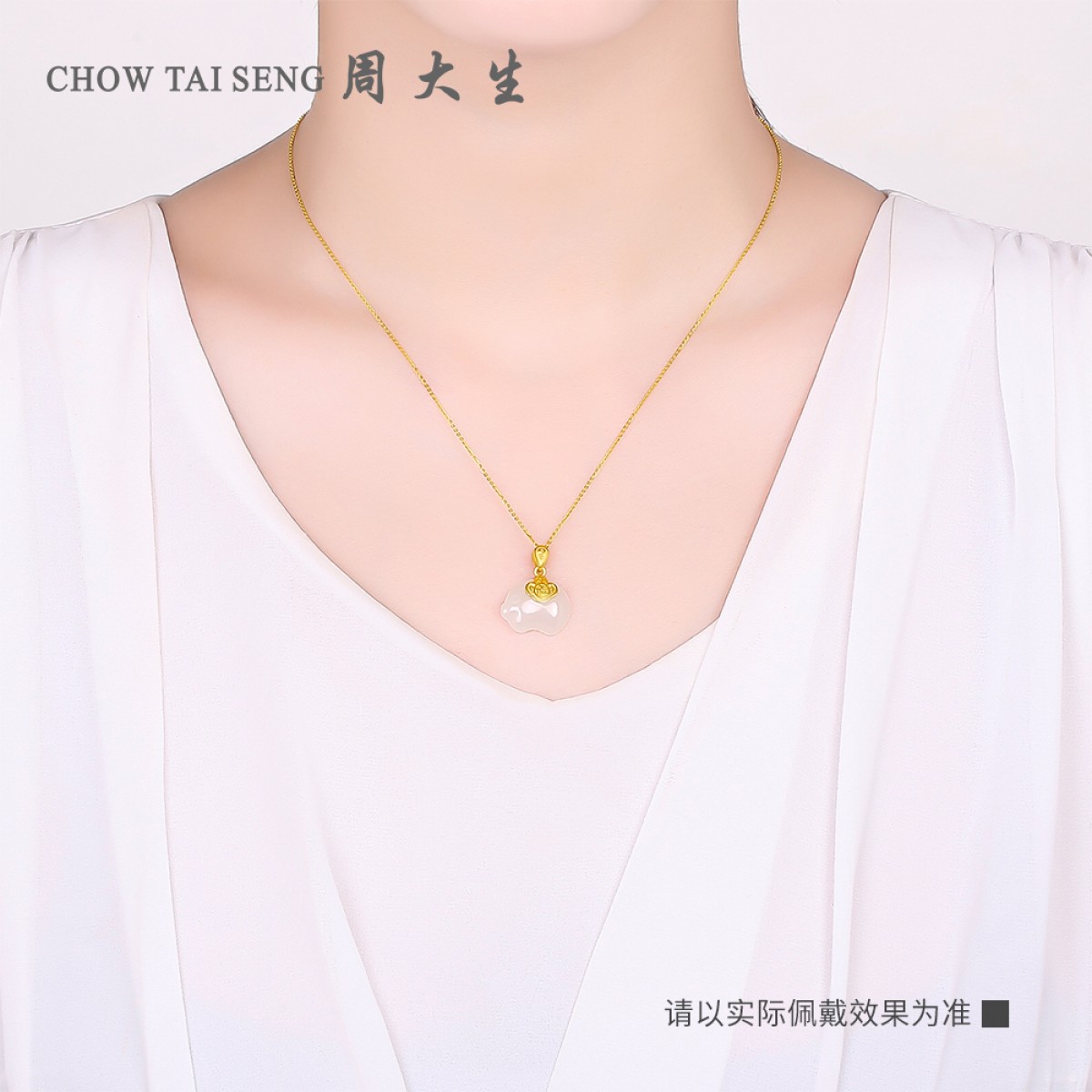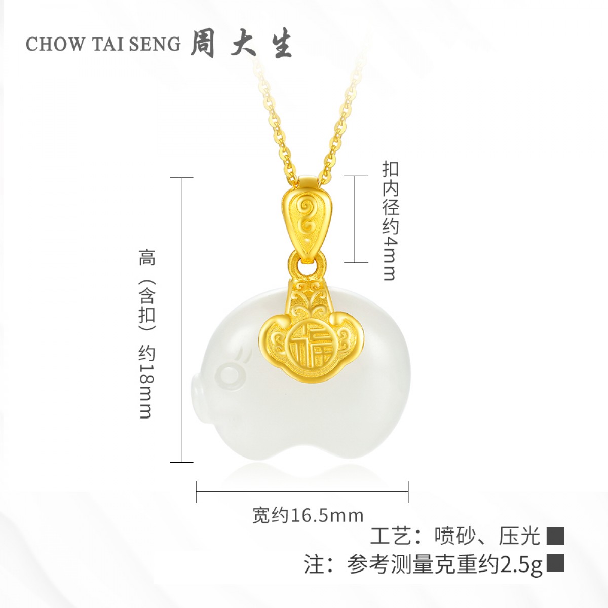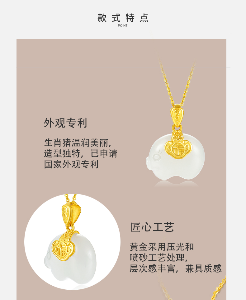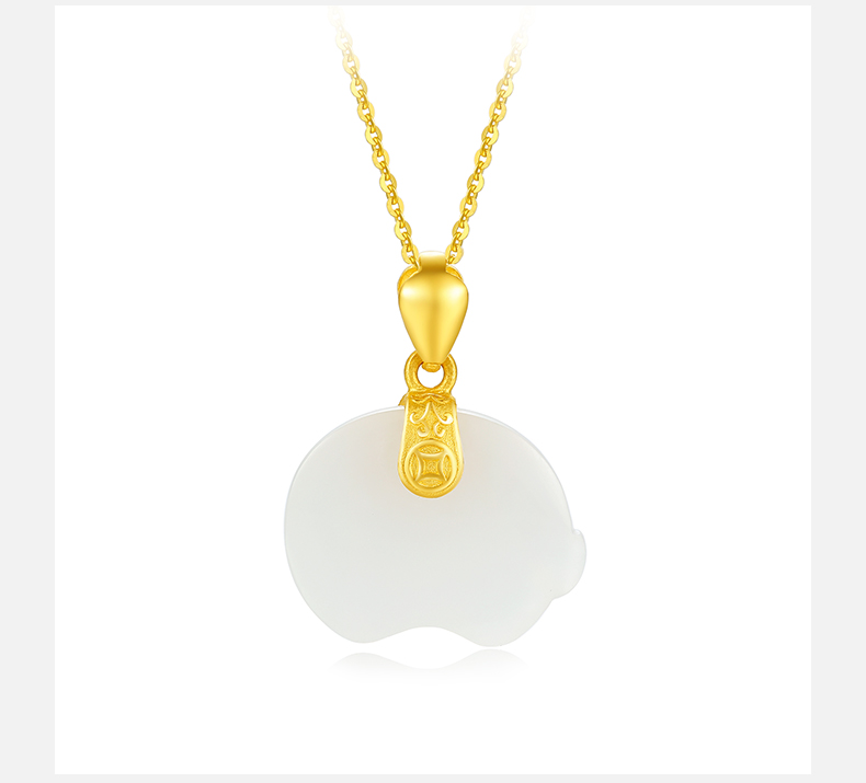 商品名称:周大生 黄金吊坠女 金镶玉本命年生肖金猪 项链和田玉挂坠