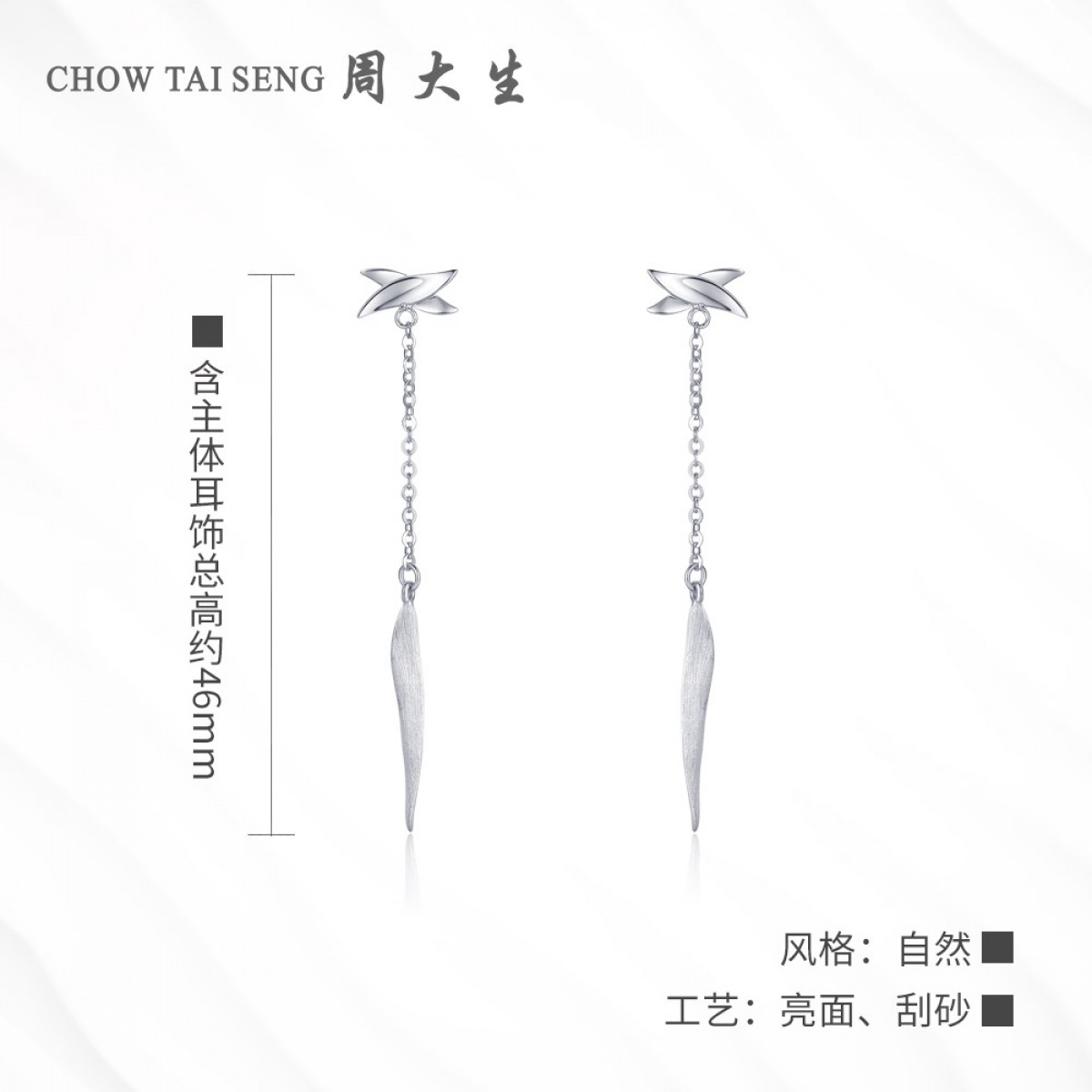 商品名称:周大生 铂金耳钉女款pt950白金耳饰花漾系列兰花新品送礼铂金耳钉
