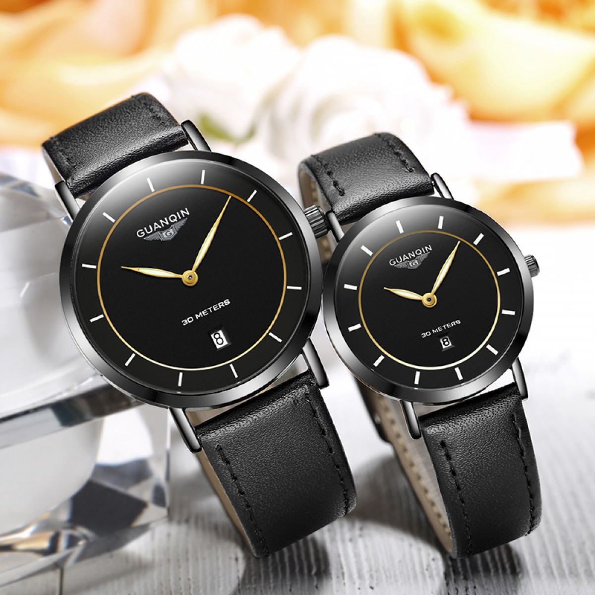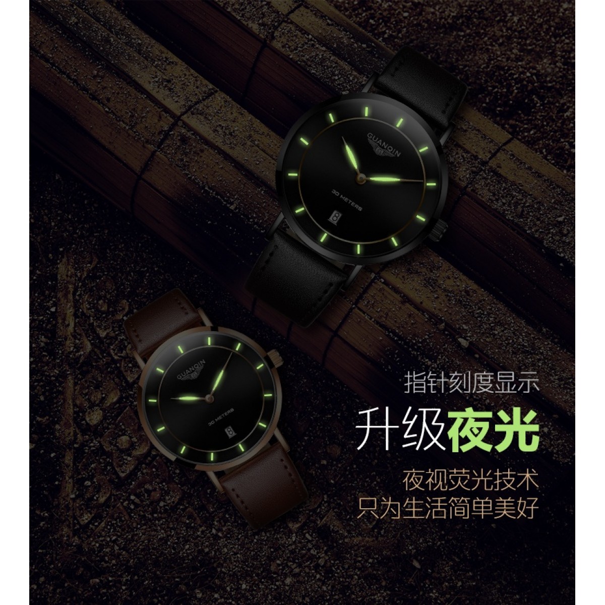 冠琴 手表男士超薄真皮钢带石英表 情侣时尚女表防水夜光男表