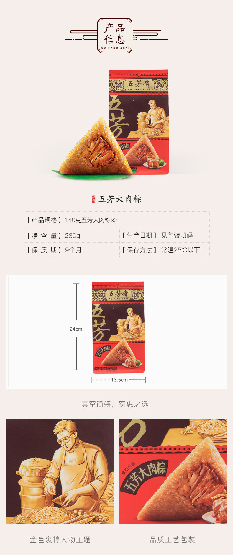 商品名称:五芳斋 粽子真空140克*2只五芳大肉粽280克鲜肉粽早餐嘉兴特产大粽