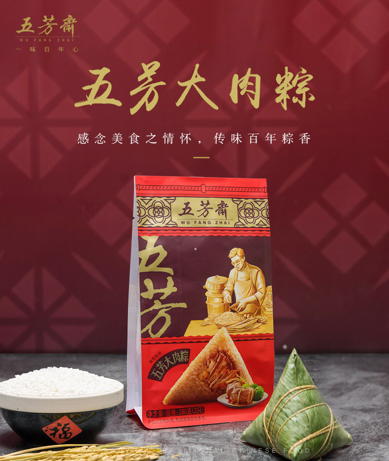 五芳斋 粽子真空140克*2只五芳大肉粽280克鲜肉粽早餐嘉兴特产大粽