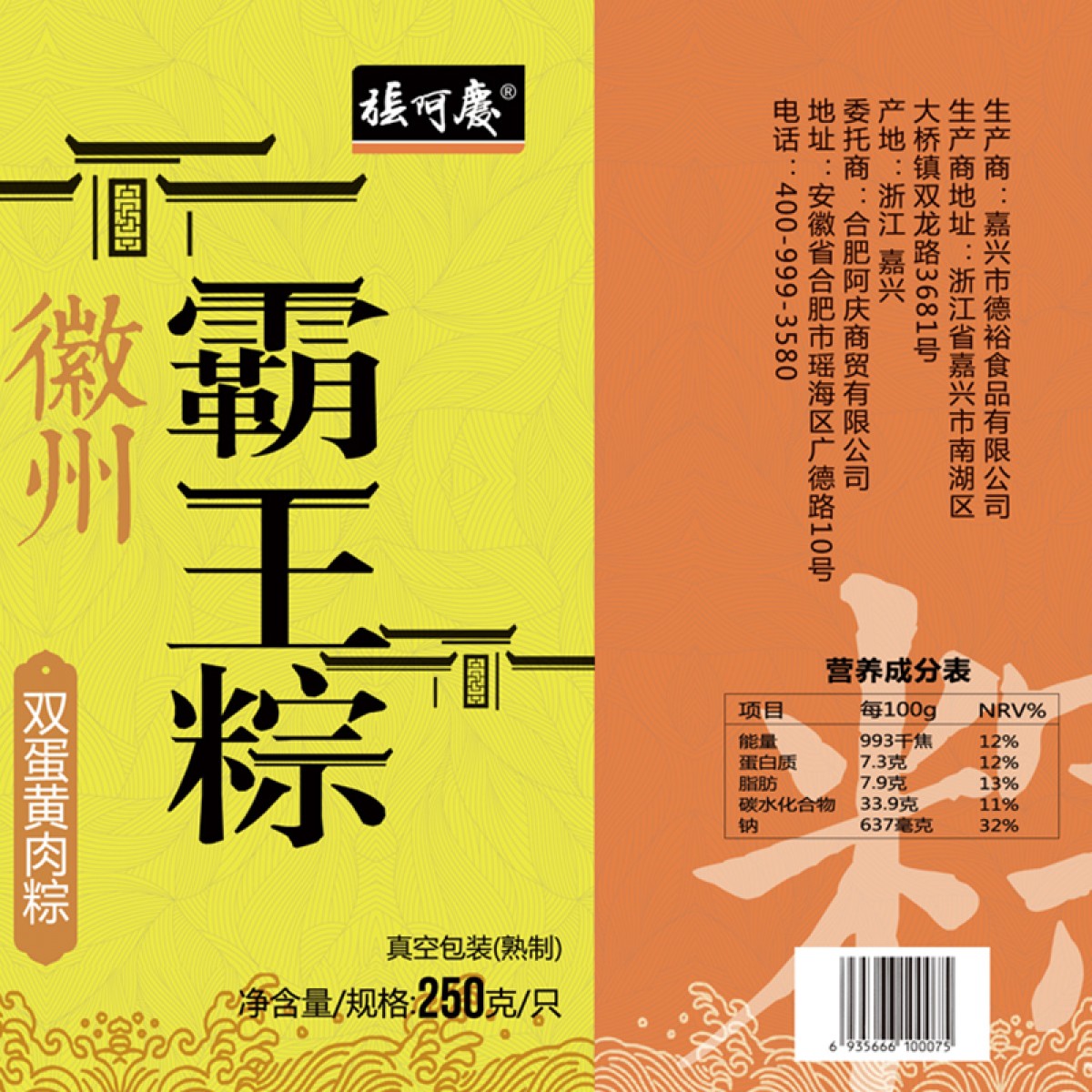 商品名称:张阿庆 霸王粽子散装蛋黄鲜肉粽250gX3只早餐即食咸熟粽子真空包装