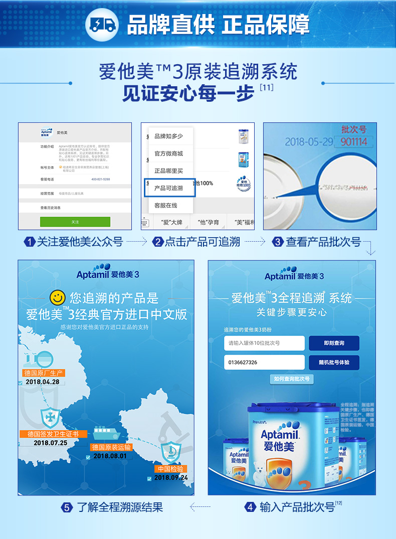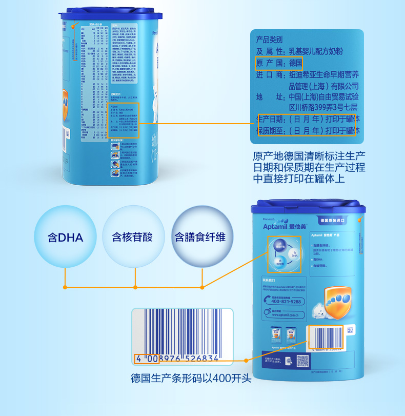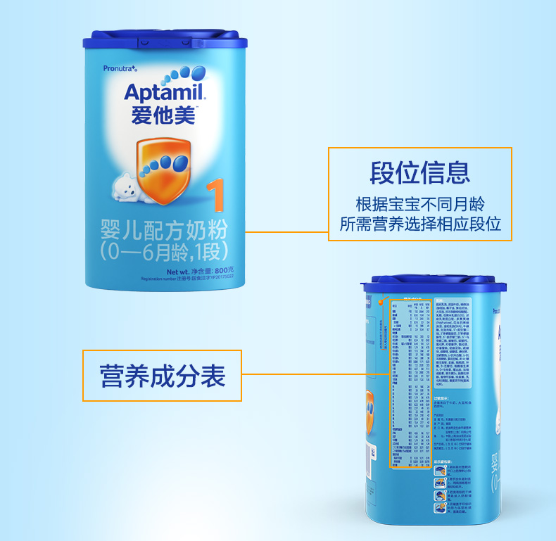 商品名称:爱他美/Aptamil 1段婴儿配方奶粉 0-6个月 双罐装 德国进口