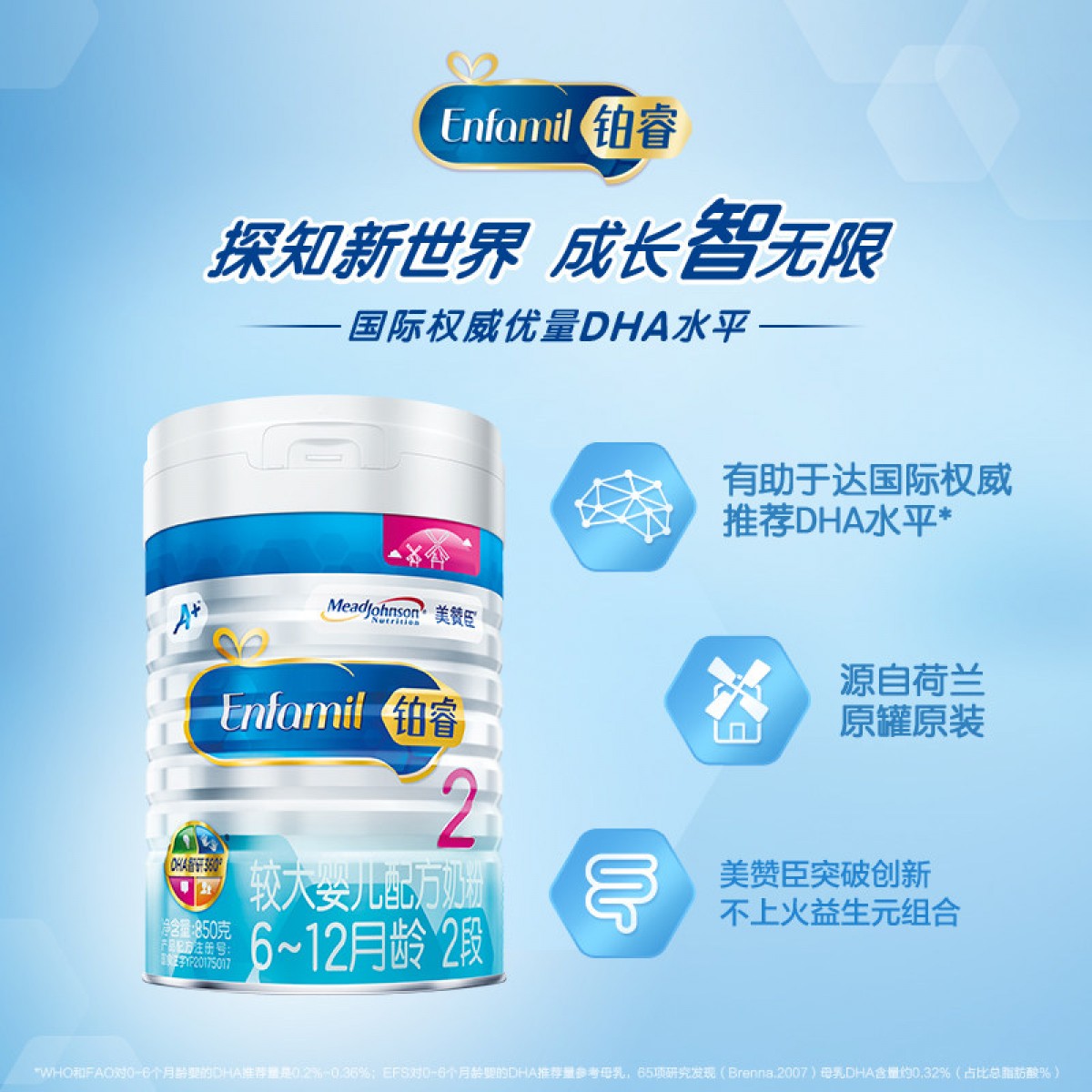 商品名称:美赞臣 铂睿2段婴儿配方牛奶粉850g*1罐装6-12个月荷兰进口