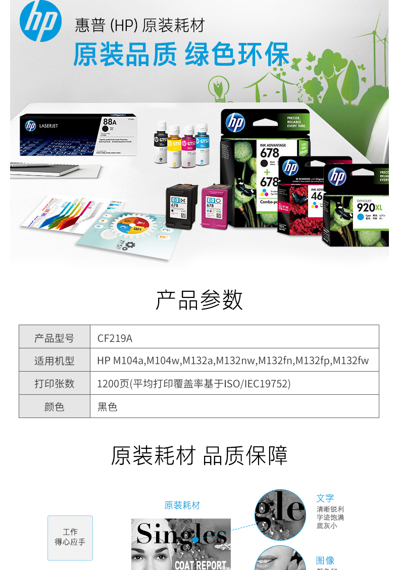 商品名称:HP/惠普 CF219A 原装硒鼓粉盒