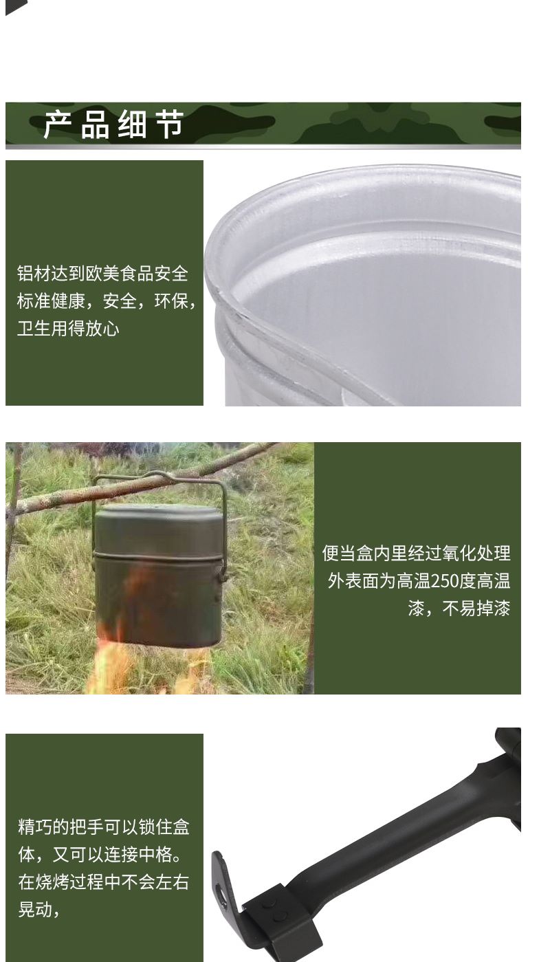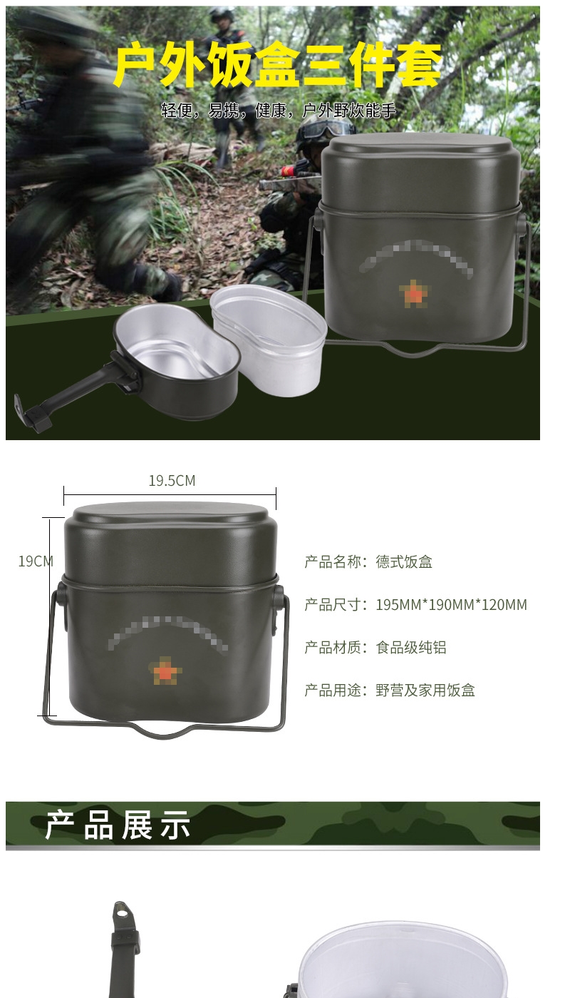 商品名称:国产 德式铝饭盒 户外野营饭盒 双层保温便当盒 便携式椭圆形饭盒