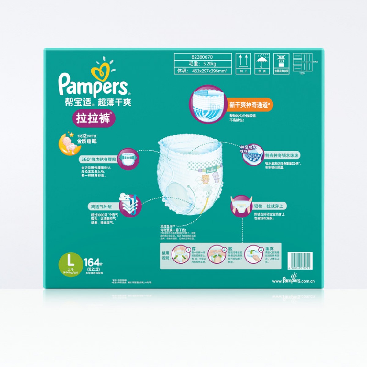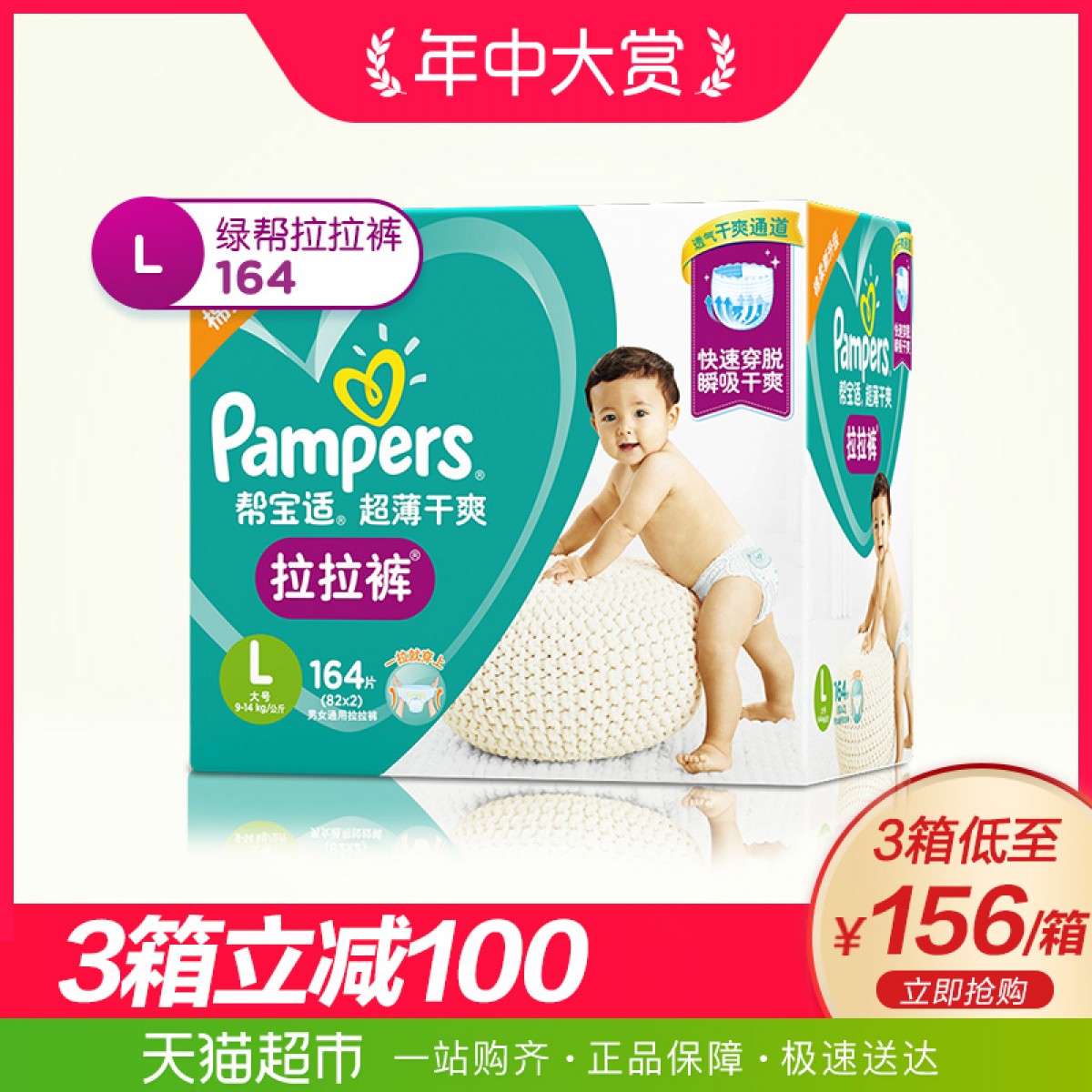 商品名称:帮宝适 绿帮拉拉裤大号L164片超薄透气男女尿不湿纸尿片