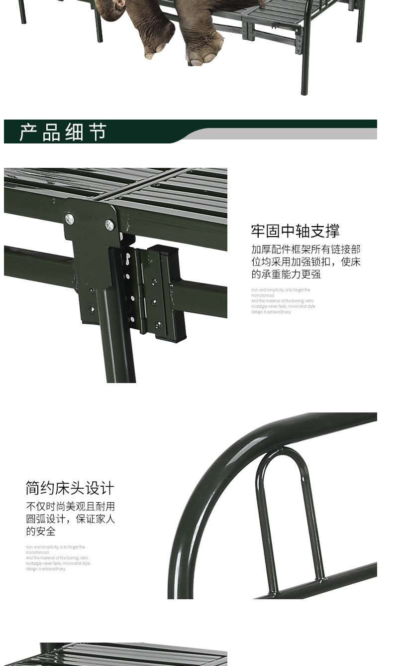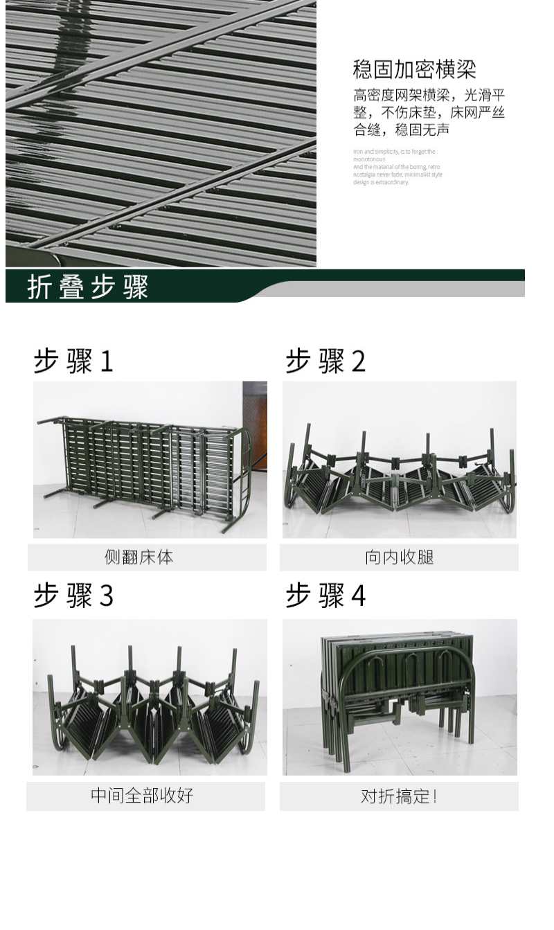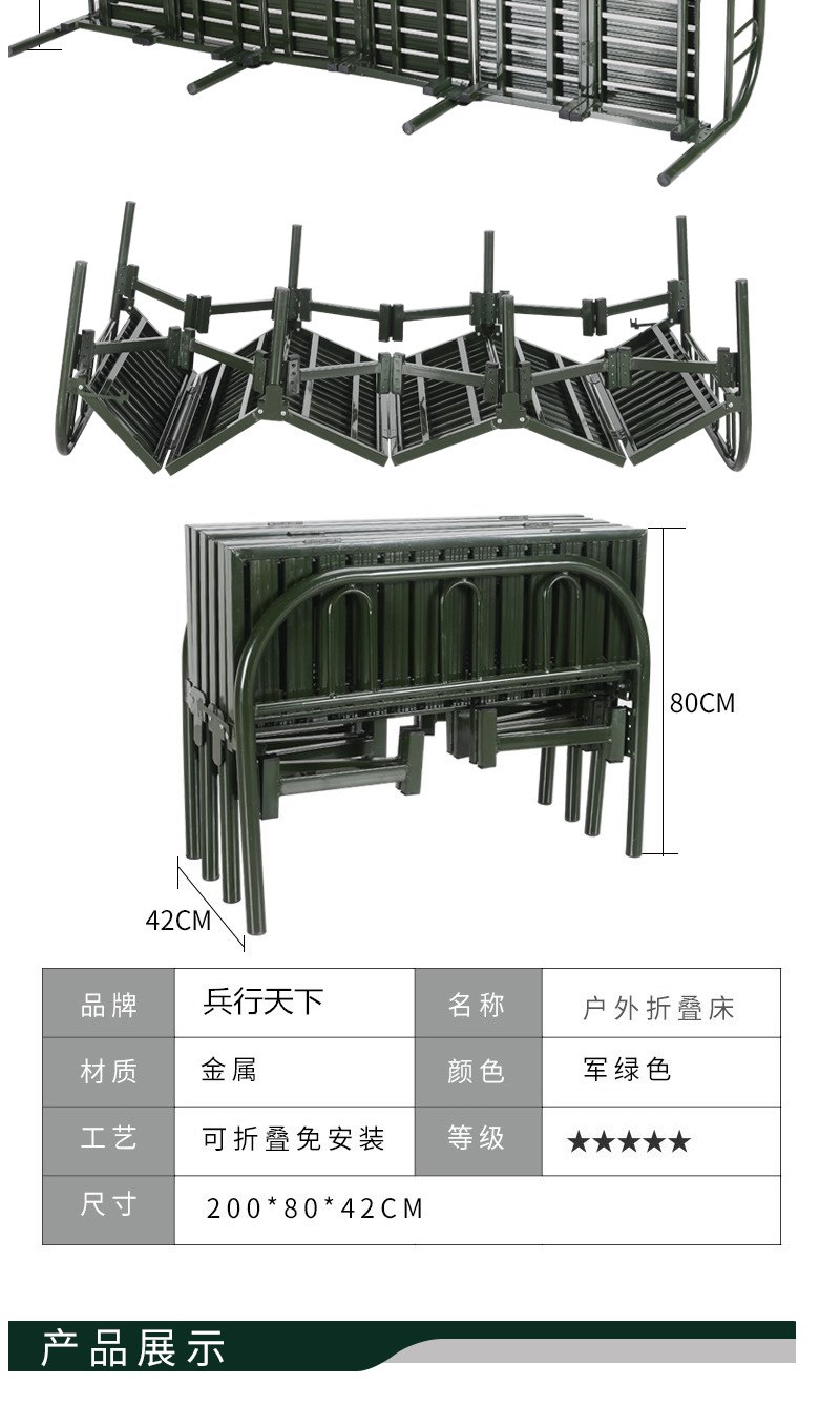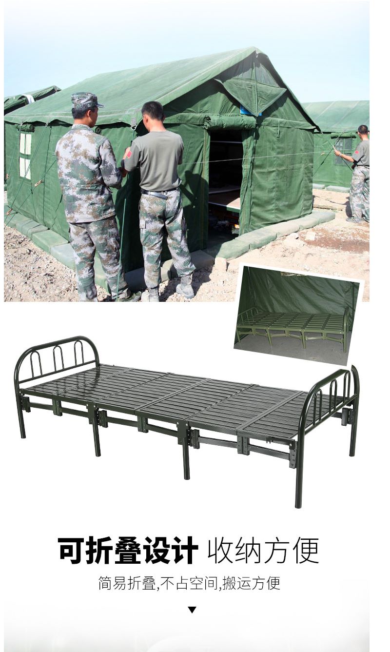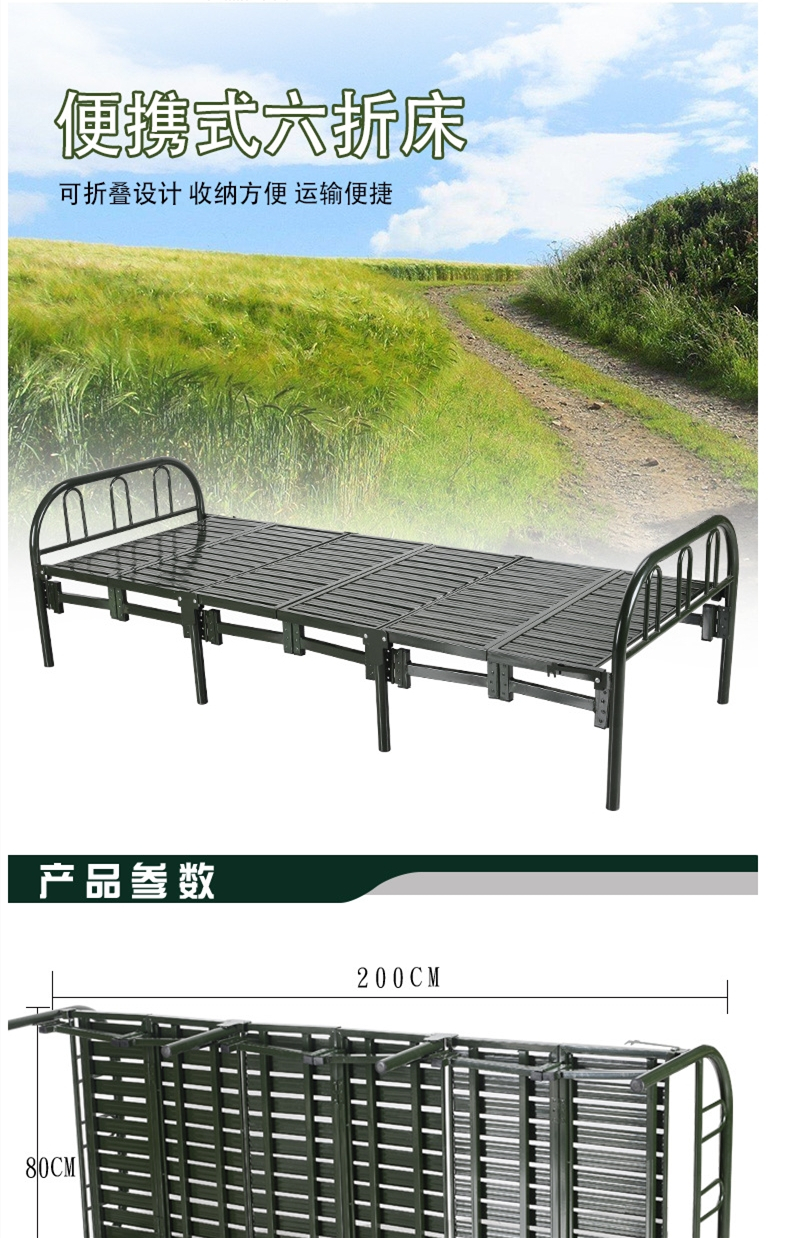 商品名称:国产 钢制六折床便携式折叠床营房六折床