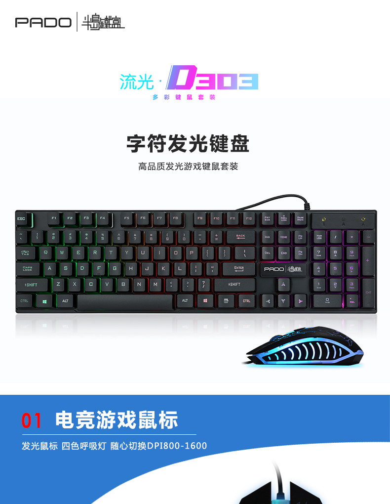 商品名称:半岛铁盒 303键鼠套装usb发背光电脑台式商务办公游戏家用键盘鼠标