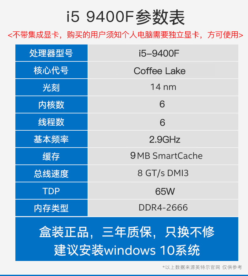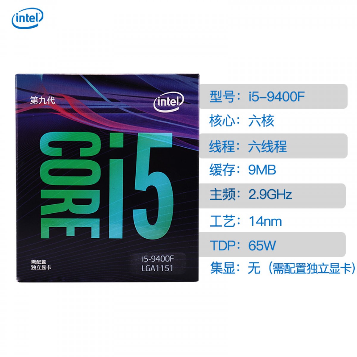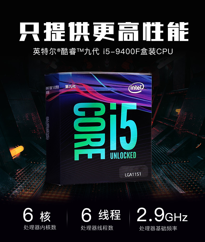 商品名称:Intel/英特尔 酷睿 i5 9400F盒装CPU 台式机电脑1151针中央处理器