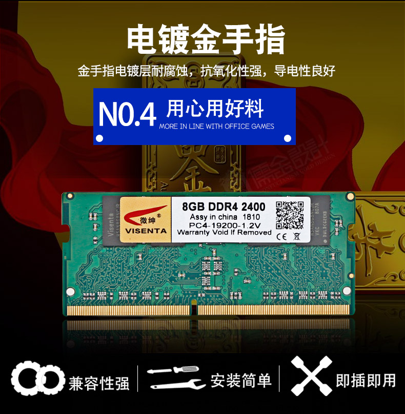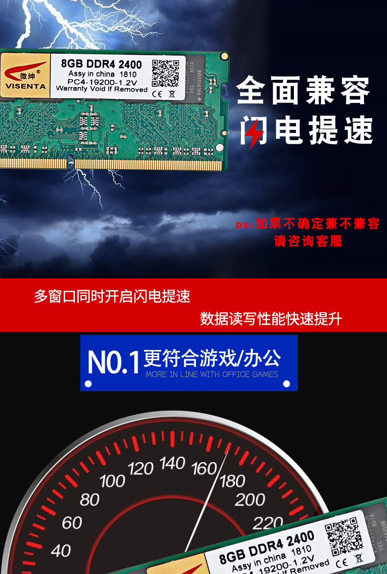 商品名称:★ 微绅DDR4 2400 8G笔记本电脑支持双通道兼容2133 2666提速内存条 兼容联想 华硕 戴尔 苹果笔记本运行内存条