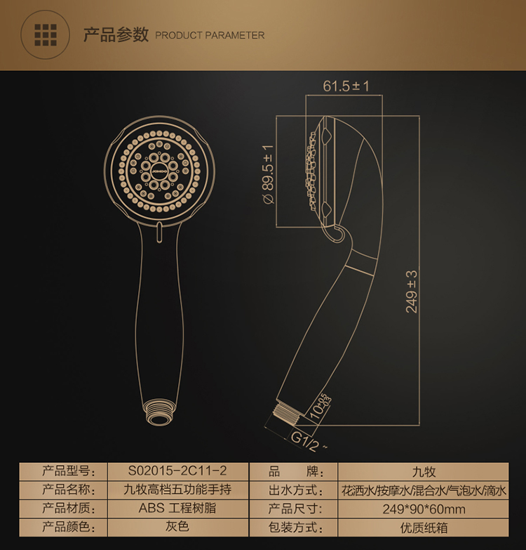 商品名称:九牧 牛卡盒包装手提花洒喷头 淋浴喷头 S02015-2C11-2