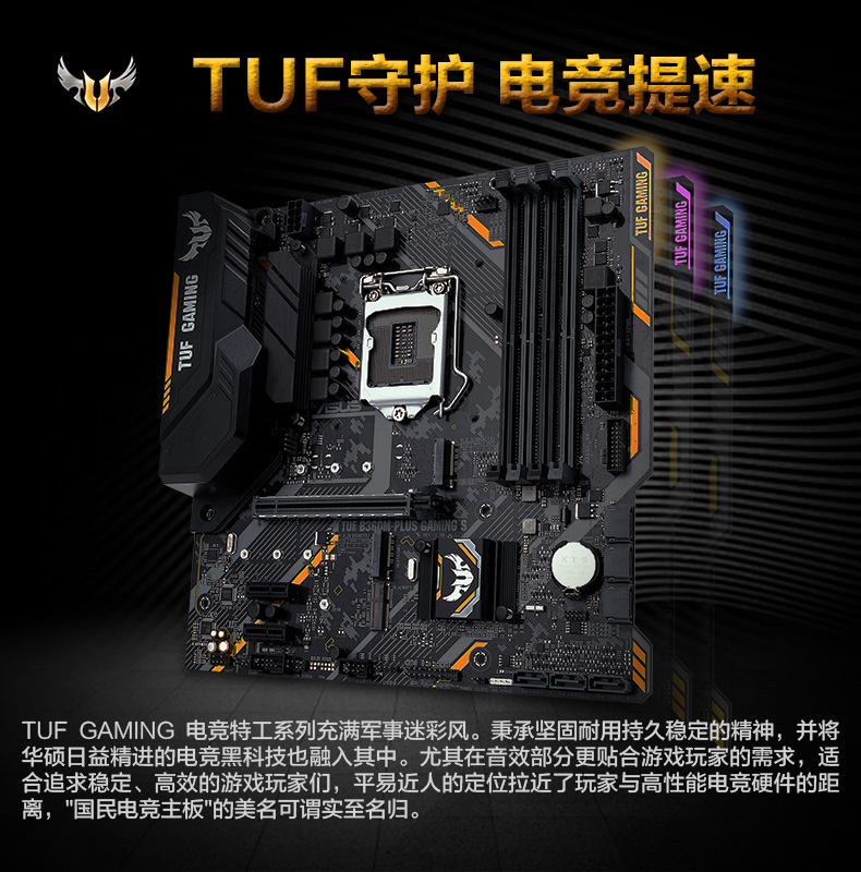 商品名称:华硕 S电脑台式游戏主板1151针 b360M小板 支持九代9400F英特尔处理器 TUF B360M-PLUS GAMING