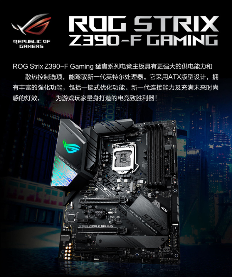 商品名称:华硕 ROG STRIX GAMING台式机电脑游戏主板1151针猛禽电竞大板支持i9 Z390-F