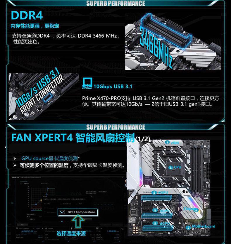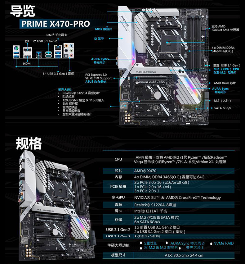 商品名称:华硕 台式机电脑游戏主板支持AMD AM4 锐龙CPU处理器 DDR4 PRIME X470-PRO