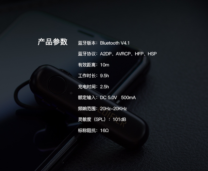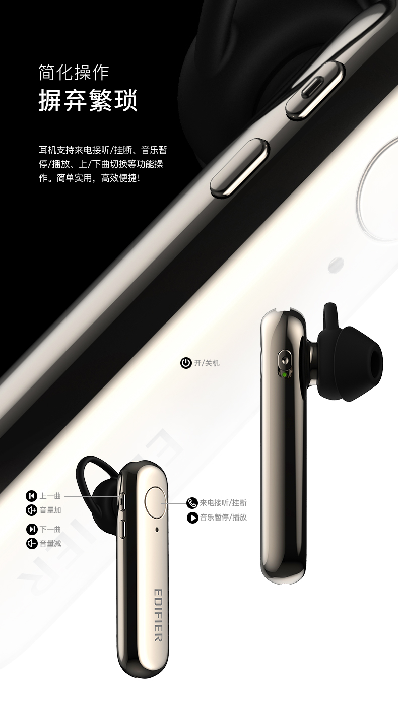 商品名称:漫步者/Edifier 无线蓝牙单挂入耳式耳塞开车通话商务耳机 W25BT